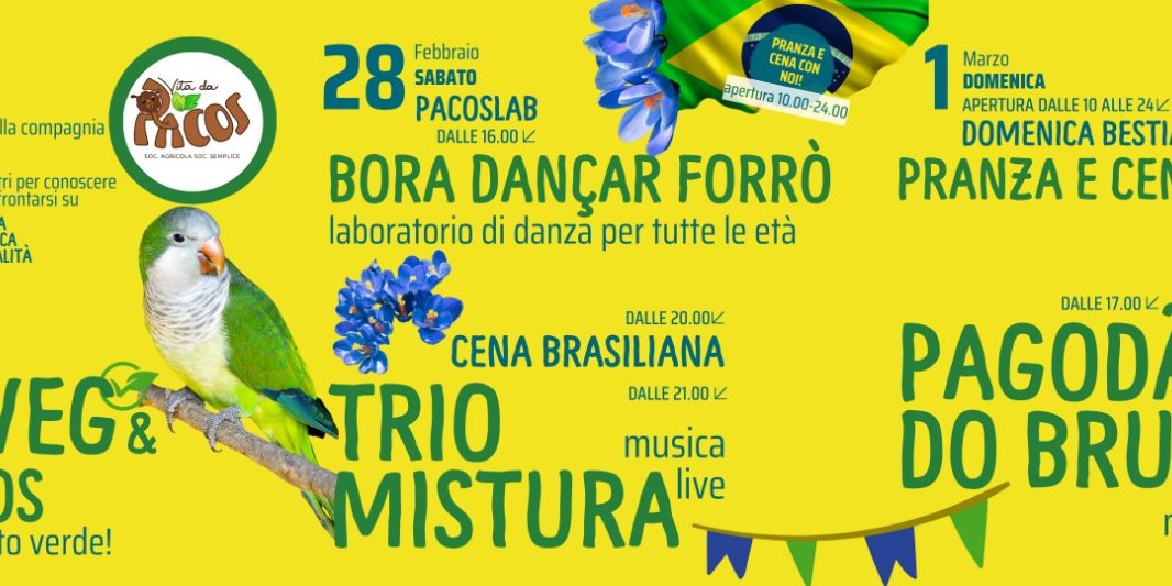 🇧🇷 PACOSLAB – FORRÒ E FESTA BRASILIANA 🇧🇷Sabato 28 Febbraio – a Vita da PacosUna giornata tutta dedicata al Brasile, alla musica, al ritmo e alla condivisione ✨Dalle lezioni di repique alla grande festa Forrò serale con musica dal vivo! 🥁 PACOSLAB – REPIQUE (lezione base)🕓 Ore 16.00–17.30Laboratorio di ballo aperto a chi vuole avvicinarsi […]